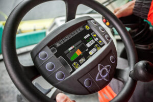 Für den Fahrer ergeben sich daraus optimale Sichtverhältnisse nach hinten, ohne Rückfahrkamera, zusammen mit dem Überrollbügel, der in die Kabinenkonstruktion integriert wurde, sowie einer gebogenen Scheibe, die ohne A-Säule auskommt. Das Display ist in der Mitte des Lenkrads zentral angeordnet. Der Fahrer kann während der Arbeit alle wichtigen Daten leicht im Blick behalten.